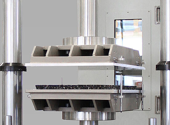 Nach ISO 7743 wird der Probekörper viermal zyklisch belastet. In der vierten Belastung werden Druckmoduli an vorgegebenen Referenzpunkten bestimmt.