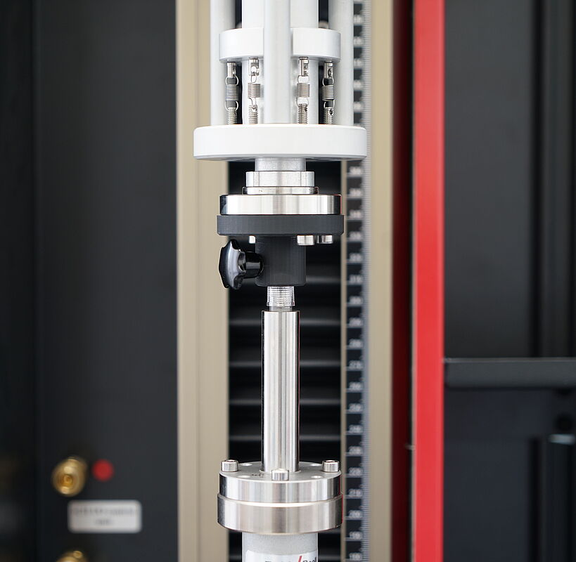 Für das Auf- und Abschrauben von Pennadeln kommen Materialprüfmaschinen mit integriertem Torsionsantrieb zum Einsatz. Eine mechanische Ausgleichseinheit mit Kupplungssystemen kompensiert Winkelabweichungen und seitlichen Versatz beim Einschrauben. Gleichzeitig sorgt ein integriertes Federsystem für eine konstante axiale Kraft während der Drehbewegung.