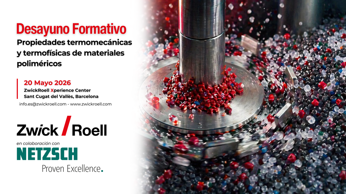 El próximo 20 de mayo de 2026, en el Xperience Center de ZwickRoell en Sant Cugat del Vallès (Barcelona), celebraremos una jornada técnica junto a NETZSCH centrada en las propiedades termomecánicas y termofísicas de los polímeros.
