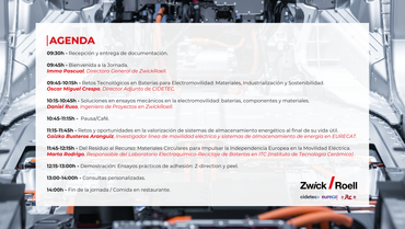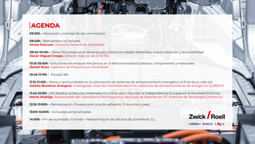 El 22 de abril de 2026, en ZwickRoell España (Sant Cugat del Vallès), celebramos una jornada técnica centrada en los retos actuales de la electromovilidad, organizada junto a Eurecat, CIDETEC e ITC - Instituto de Tecnología Cerámica.