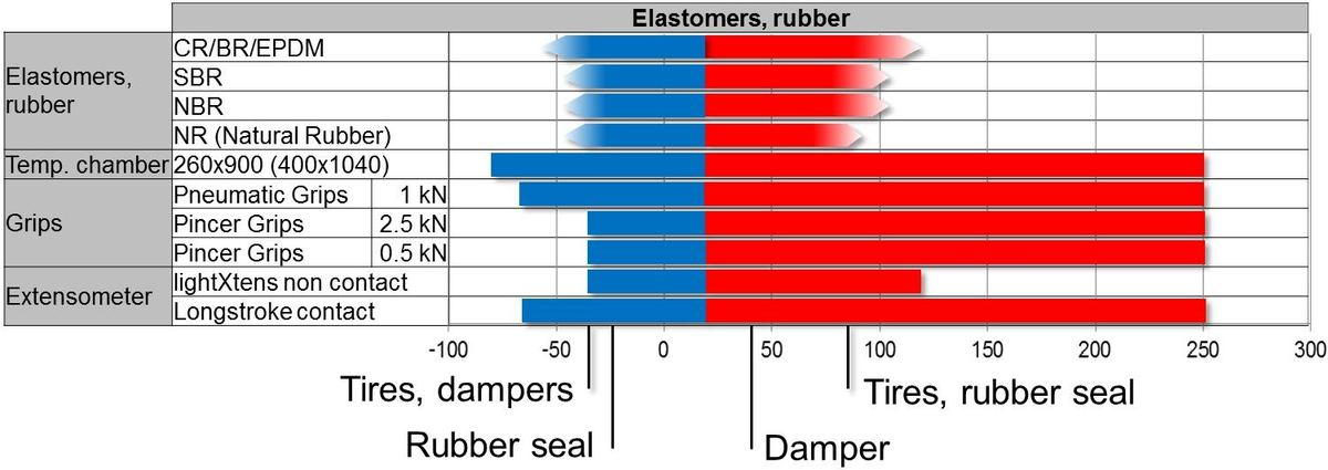 - Grote meetverplaatsingen voor elastomeren of rubber worden met de lightXtens of een lange koers extensometer opgevangen, zodat u de vrijheid heeft optisch of aanrakend te meten.