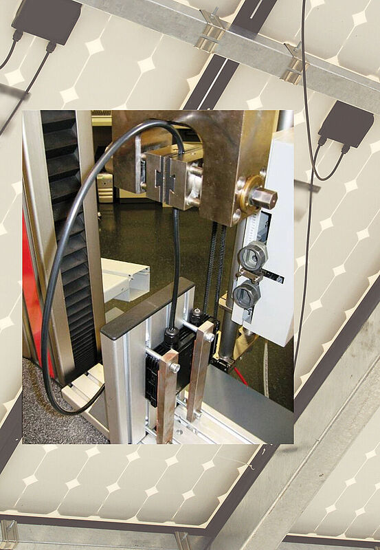 Uma célula fotovoltaica está exposta diariamente a condições ambientais extremas.Chuva, granizo, ventania, mas também grandes variações de temperatura não podem comprometer a capacidade funcional.O peso da neve, gelo e também trabalhos de montagem devem ser suportados sem ocorrência de danos e isso com um ciclo de vida desejado de até 40 anos.São altos requisitos quanto a propriedades elétricas e também mecânicas.Contudo, justamente para os requisitos mecânicos de componentes não há normas de ensaio.Exceto diretrizes internas em contratos avulsos entre fornecedores e fabricantes, não existe qualidade assegurada padronizada para células fotovoltaicas.A ausência de padrões e os requisitos individuais dos clientes requerem dispositivos de ensaio e tarefa de ensaio customizados.Aqui entram em campo os especialistas em ensaio de materiais.