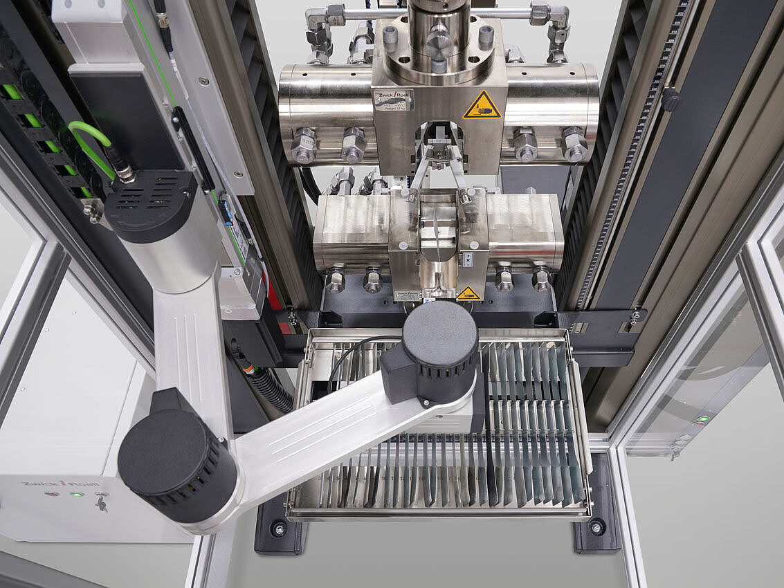 Наше новое автоматизированное испытательное решение ALEX представляет собой экономичное и особенно компактное решение по автоматизации, подходящее для любой лаборатории. Роботизированный манипулятор интегрирован непосредственно в испытательную машину, вследствие чего занимаемая площадь практически сопоставима с площадью чисто ручной испытательной машины.