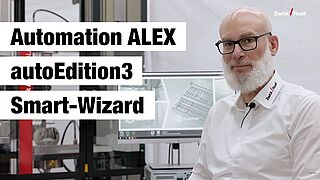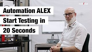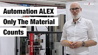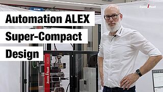 Our new automated testing solution ALEX is available with the SmartWizard software assistant, which allows the operator to independently adapt the ALEX automation system to changing specimen shapes or test sequences.